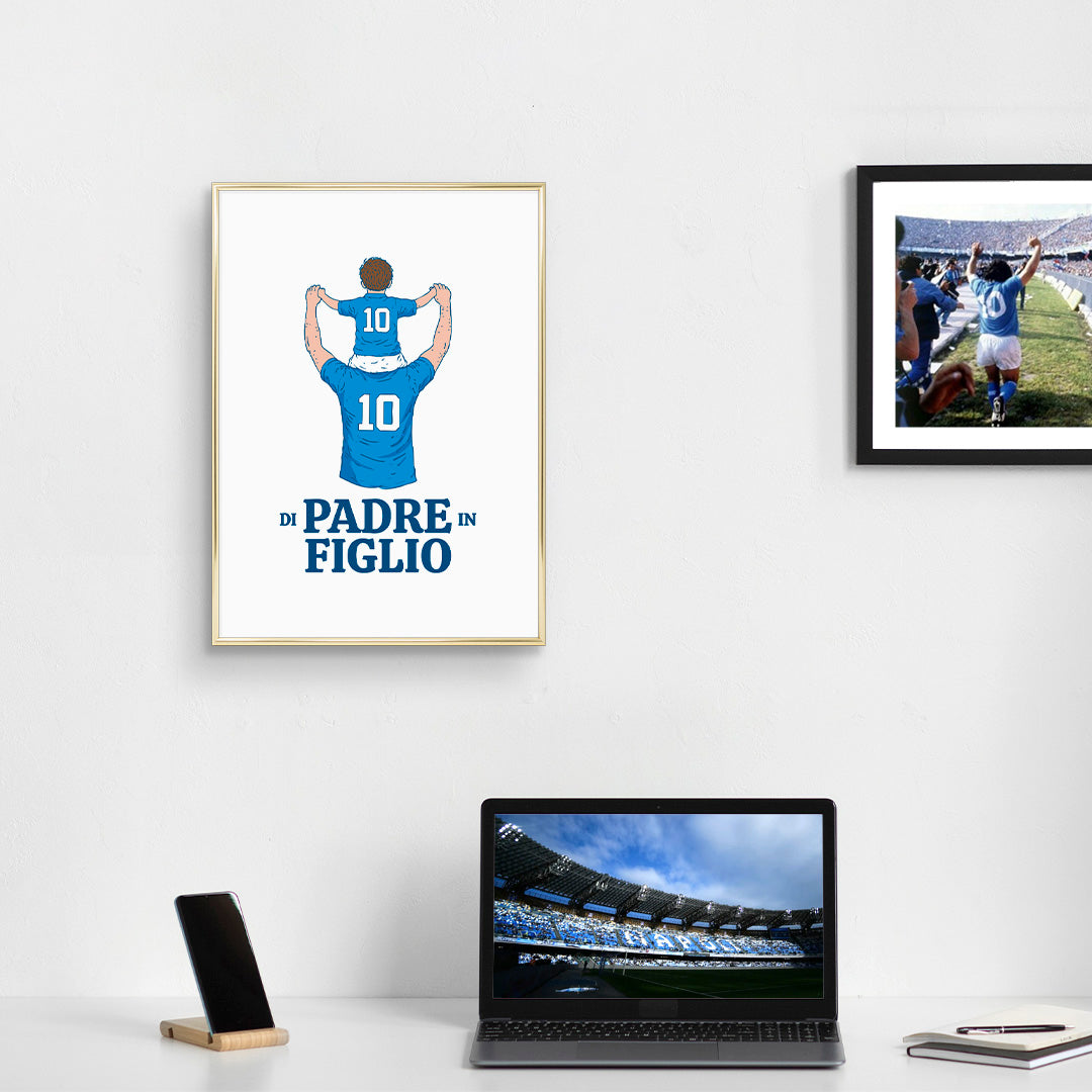 Un poster unico che celebra la passione per il Napoli tramandata di generazione in generazione. L’idea regalo perfetta per raccontare un legame speciale e l’amore eterno per la propria squadra.