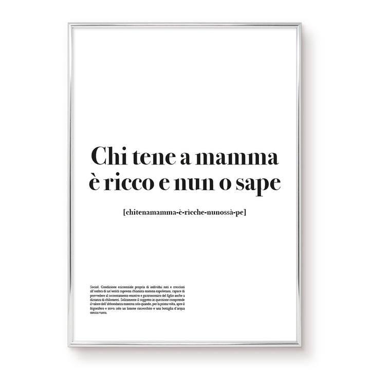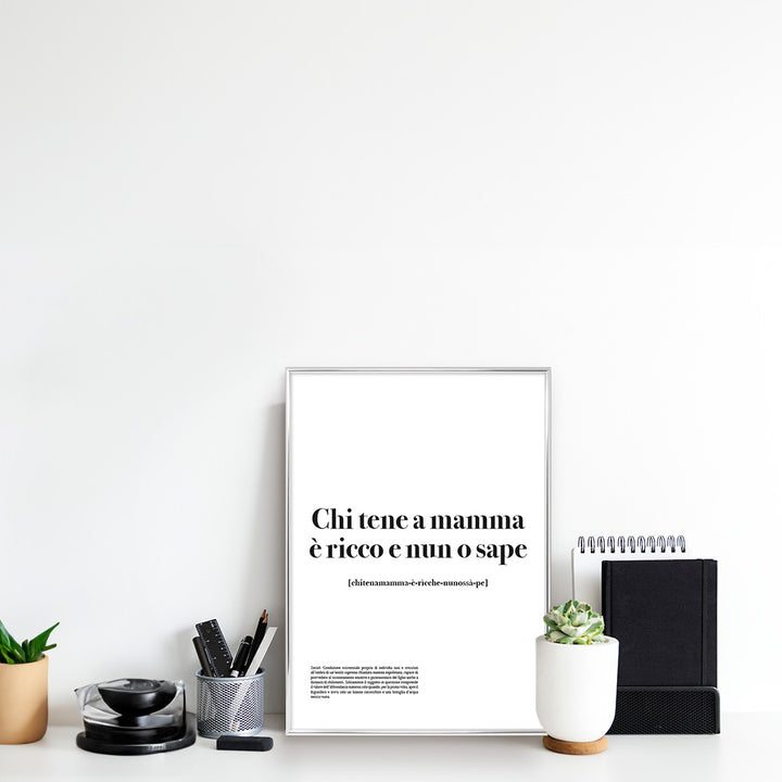 Il nostro poster cattura l'essenza stessa della figura materna napoletana, rappresentandola come il fulcro intorno al quale ruota la vita di tutti. Celebra l'amore travolgente e l'irrefrenabile passione di una mamma napoletana con il nostro poster speciale per la Festa della Mamma.