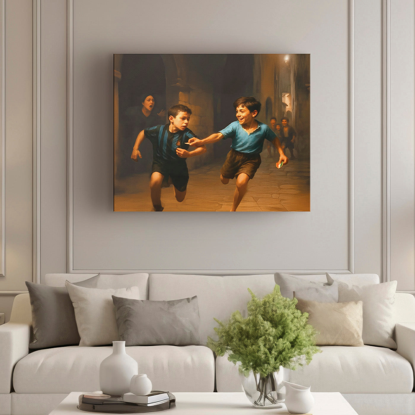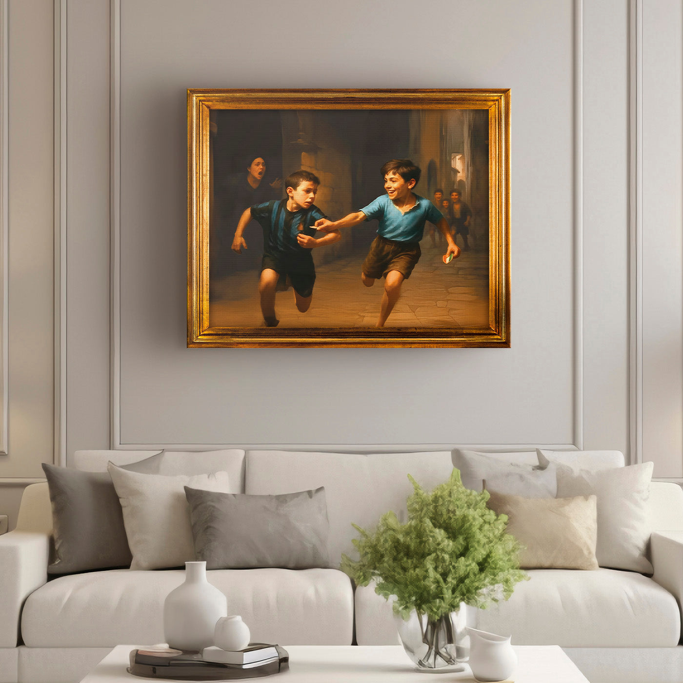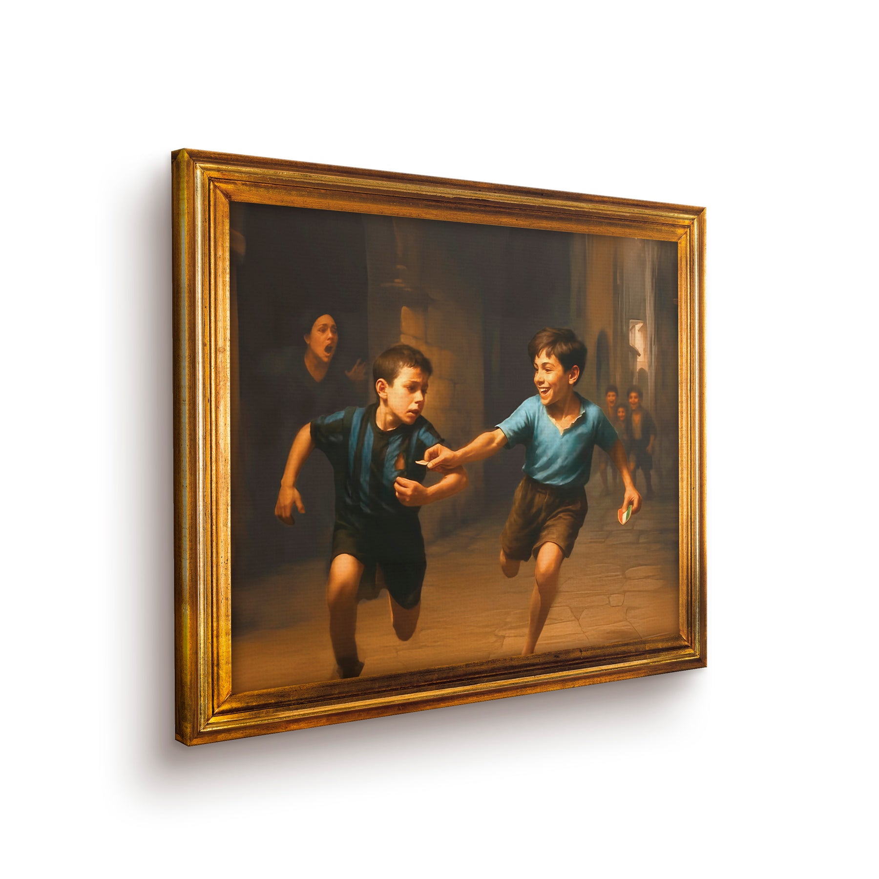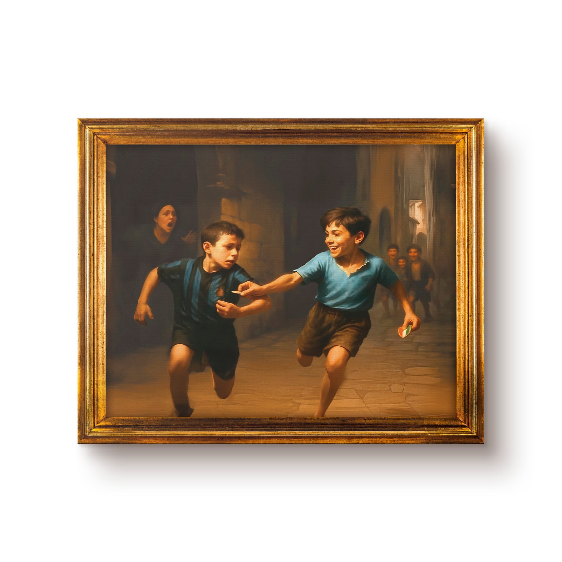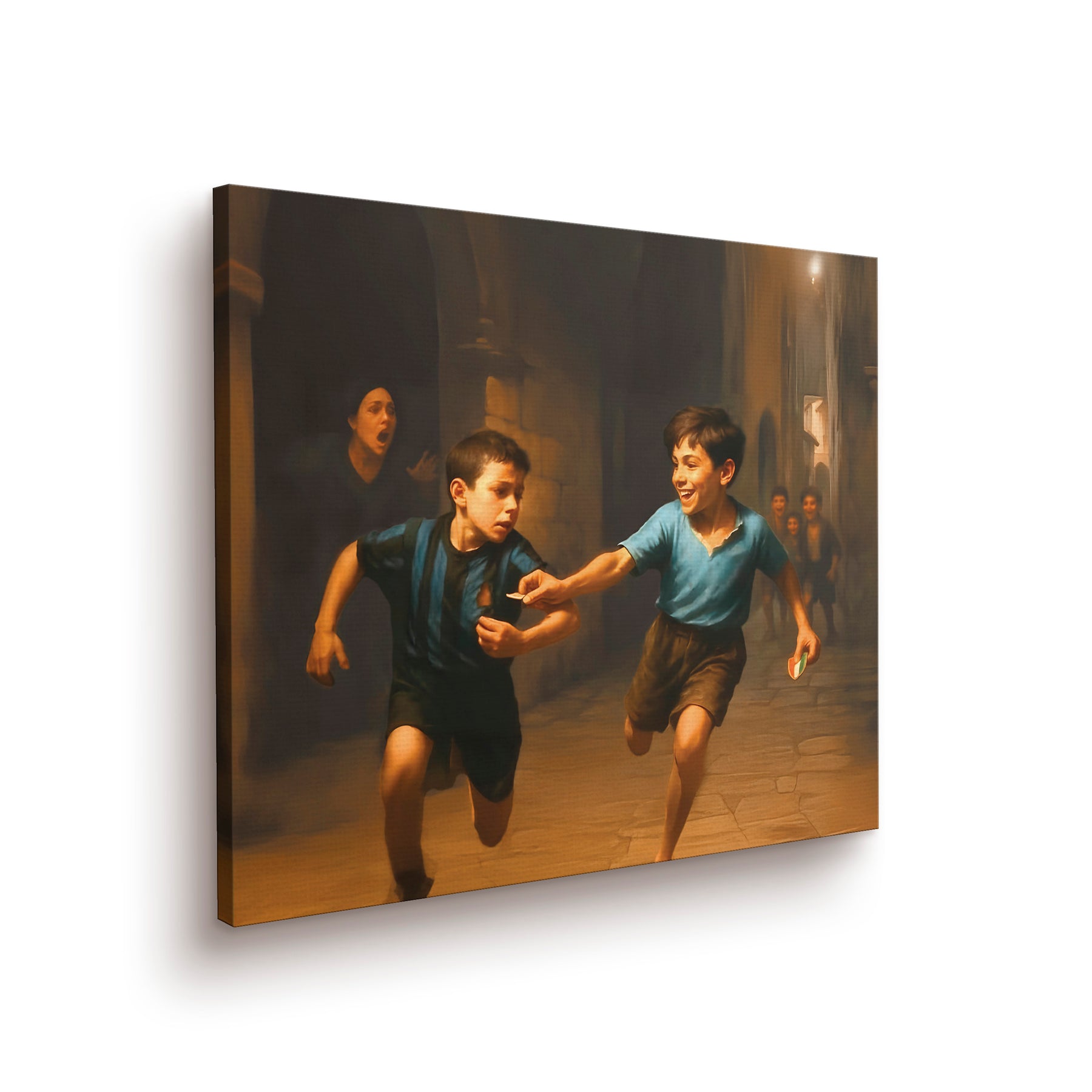 Abbiamo trasformato la coreografia più iconica dell’ultimo scudetto del Napoli in un’opera d’arte da appendere. Si tratta di un quadro su tela con l'effetto della cornice stampata (la cornice non è inclusa, è solo un effetto di stampa), un'opera storica che rappresenta l'essenza della cultura Napoletana, il riscatto di una vita, la lotta contro i pregiudizi di un'intera nazione. Ora l'opera d'arte è davvero completa. Avanti scugnizzi!
